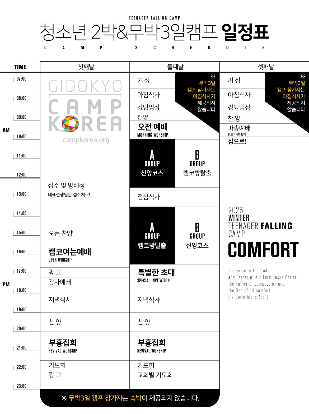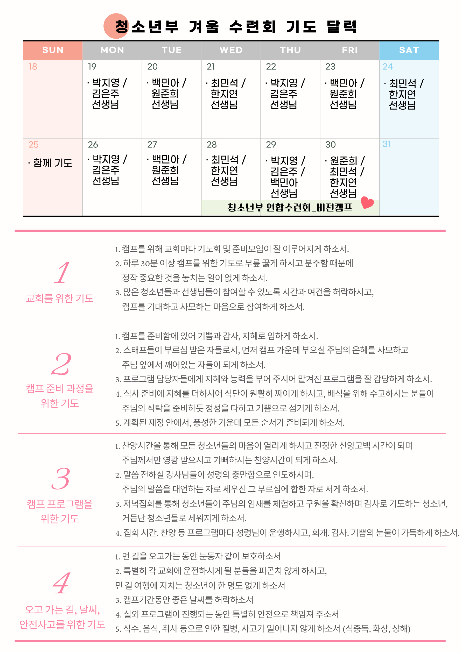 청소년부 겨울 수련회 안내 및 기도