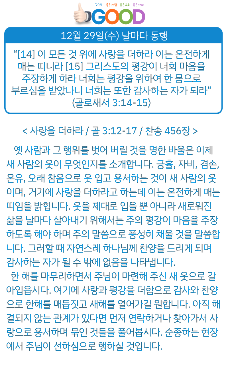 12월 29일(수) "사랑을 더하라"