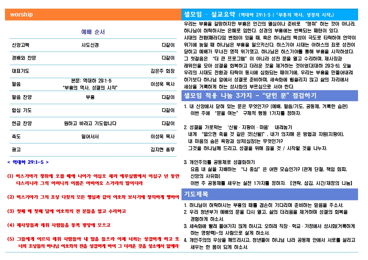 교회 일정