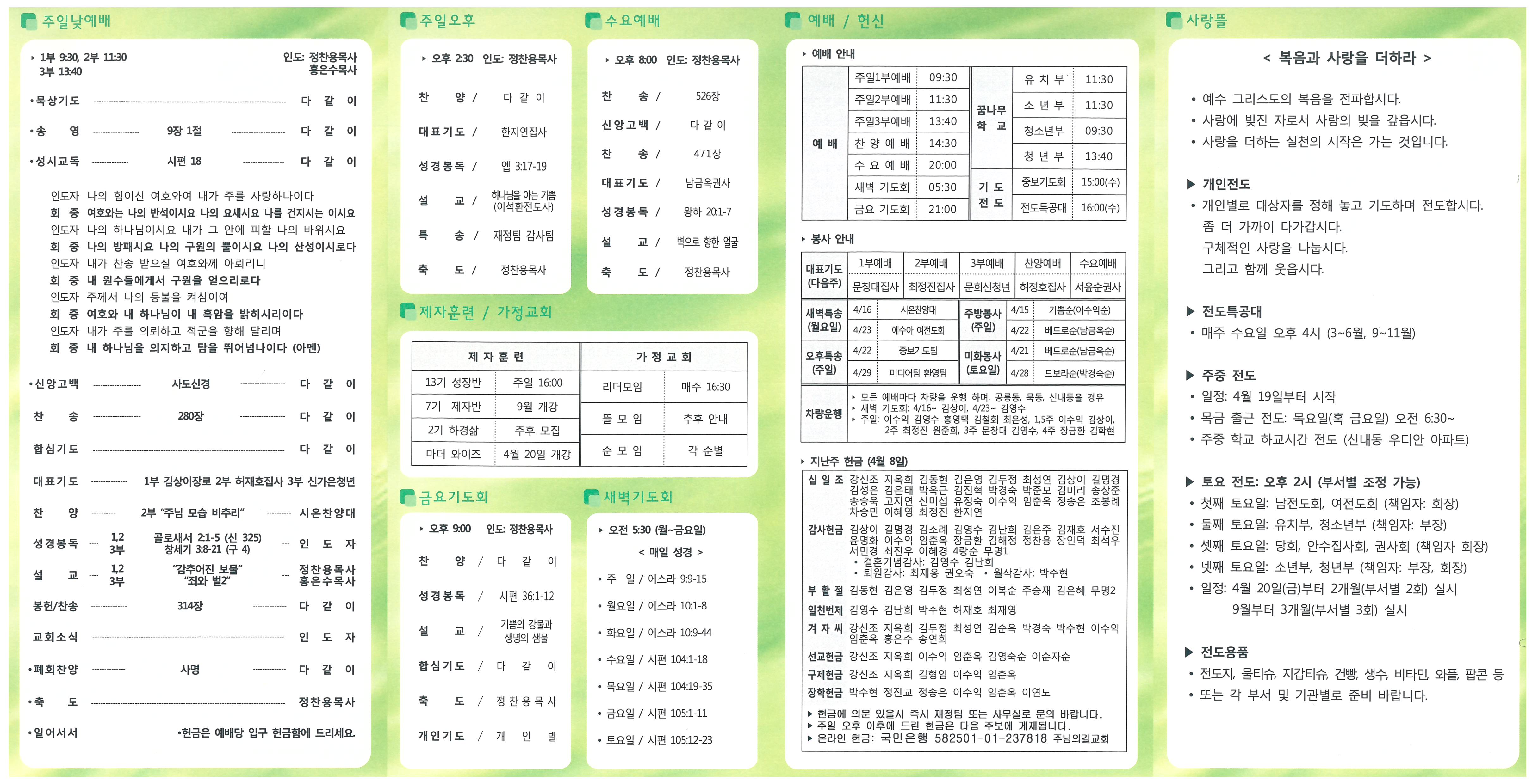 | 4월 15일 교회소식/주보 | 운영자 | 2018-04-14 | ||||||||