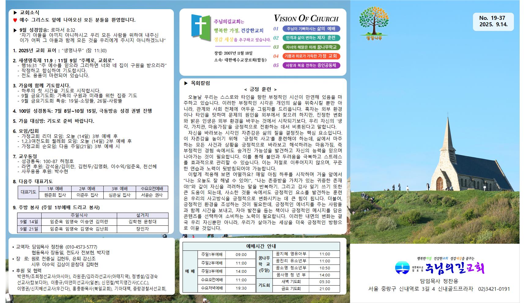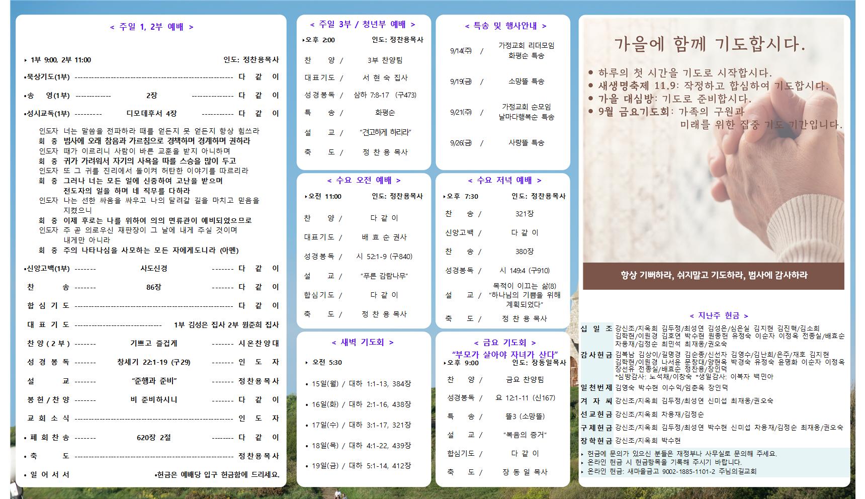 | 9월14일 교회소식&주보 | 운영자 | 2025-09-13 | |||||||||||||||||||||