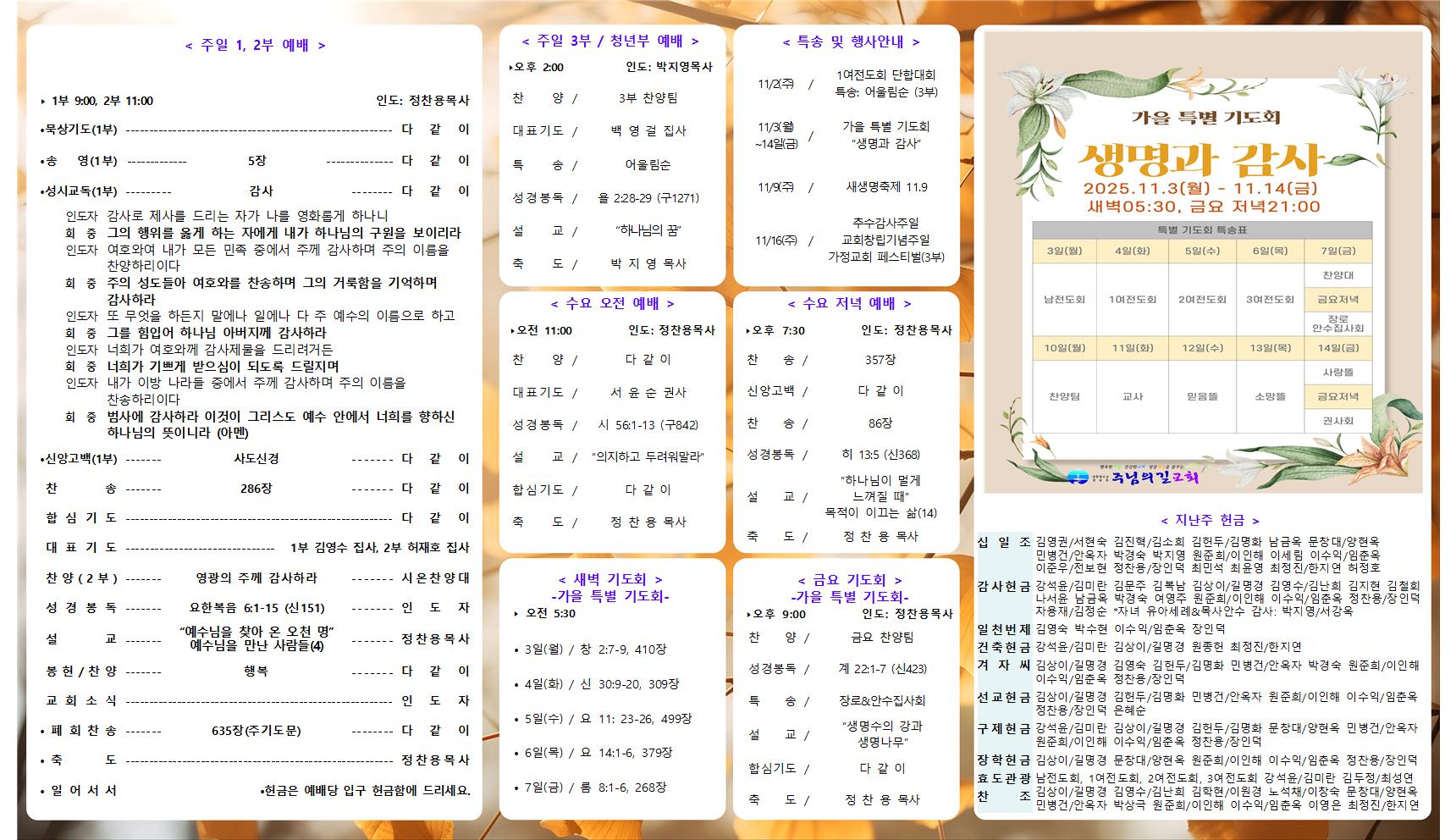 | 11월2일 교회소식&주보 | 운영자 | 2025-11-01 | |||||||||||||||||||||||||||||||||||||||||||||
