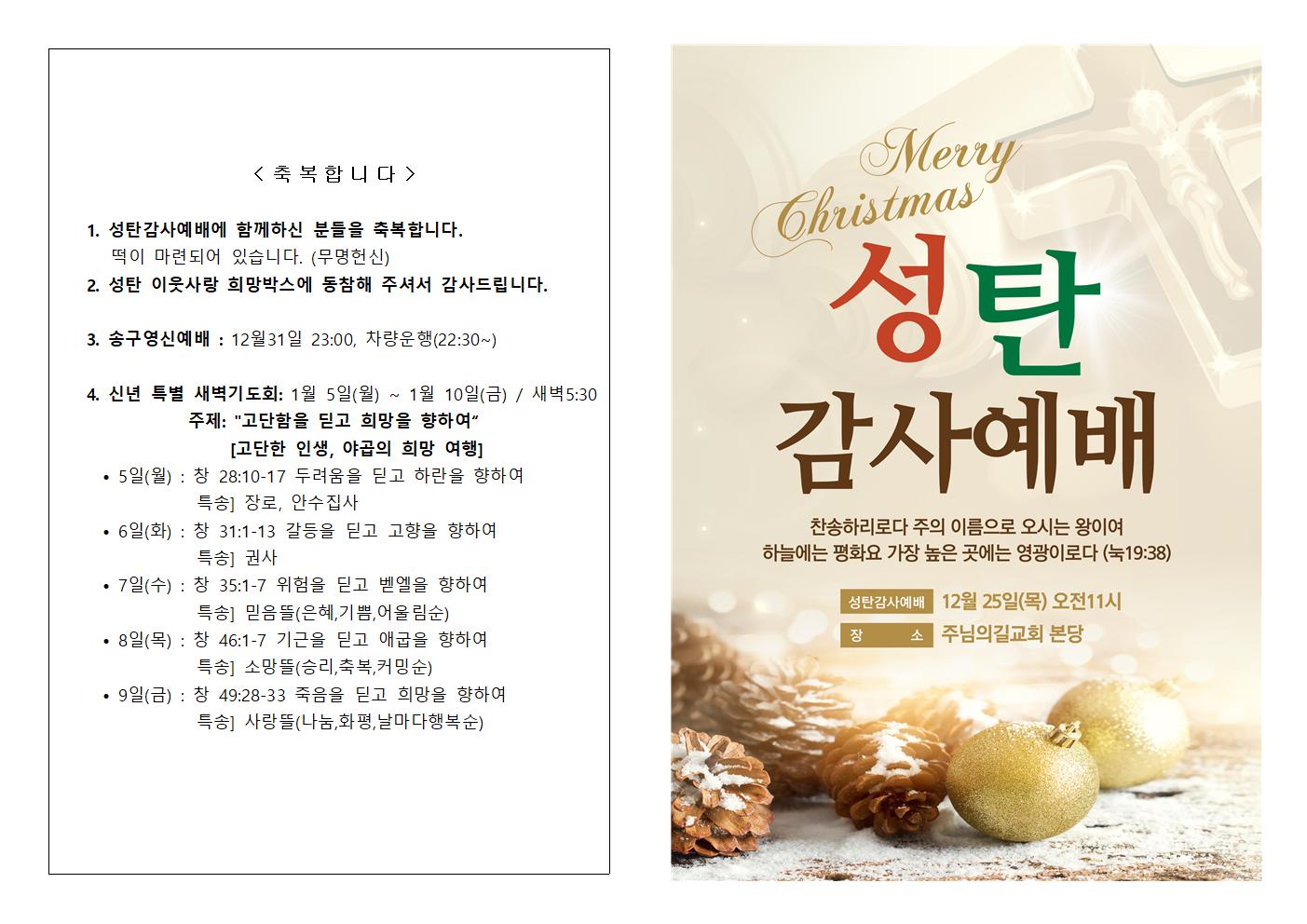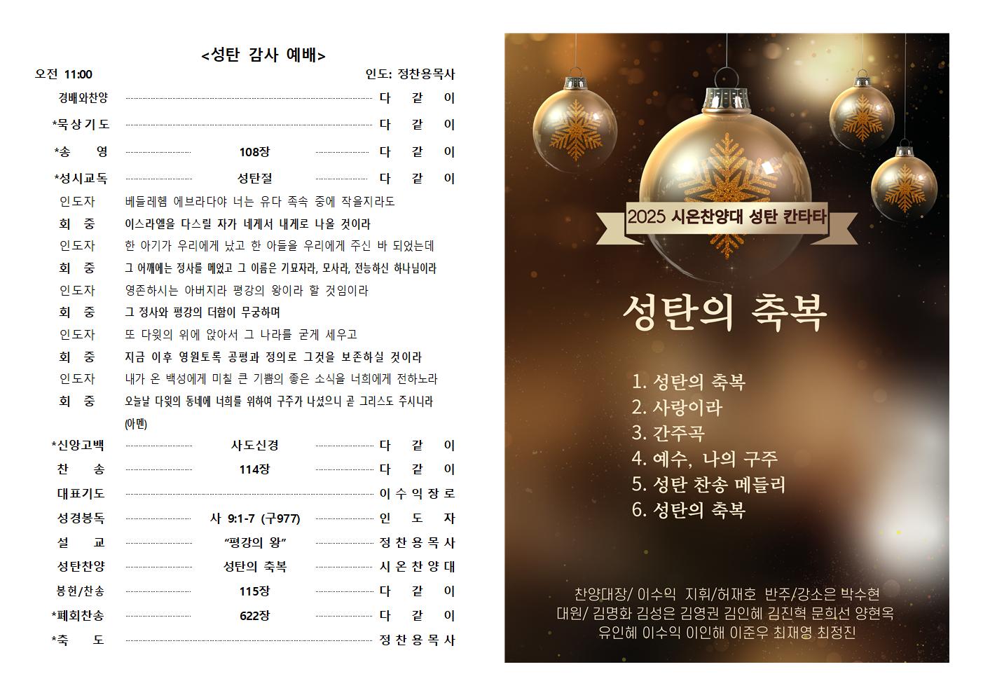 | 2025년 성탄감사예배 순서지 | 운영자 | 2025-12-24 | |||