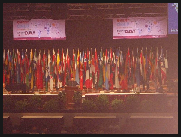 지역대표모임에 이어서 5월 16일부터 21일까지는 국제대회가 열렸습니다. 전 세계 68개국에서 온 1,007명의 대표들로 성황을 이루었습니다. 이번 국제대회의 주제는 “Together We Can”이었습니다. 모든 사역자들이 한 마음이 되어 연합하면 2017년까지 전 세계 모든 나라 207개국(유엔 통계)에 어린이전도협회 사역이 실시되도록 할 수 있다는 모토입니다. 3년 전인 2008년 국제대회가 개최되었을 때 어린이전도협회가 설립된 나라가 143개 국가였던 것이 이번에는 34개 국가가 늘어 177개 국가가 되었습니다. 앞으로 31개 국가가 남았습니다. 마지막까지 남은 이 나라들은 정치적으로나 종교적으로 가장 힘든 나라인 것이 틀림없습니다만 우리가 기도와 믿음으로 나아가면 하나님께서 문을 여실 것을 확신합니다.