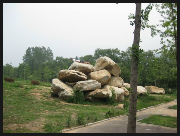 <소림사 경내의 바위 쌓인 곳 - 아빠가 말리는데도 한별이는 친구들에게 "인증 샷"를 보여주어야 한다면 굳이 바위 위로 올라가서 요즘 호주 젊은이들 사이에 인기 있는 "시체놀이"를 하고 있습니다.>