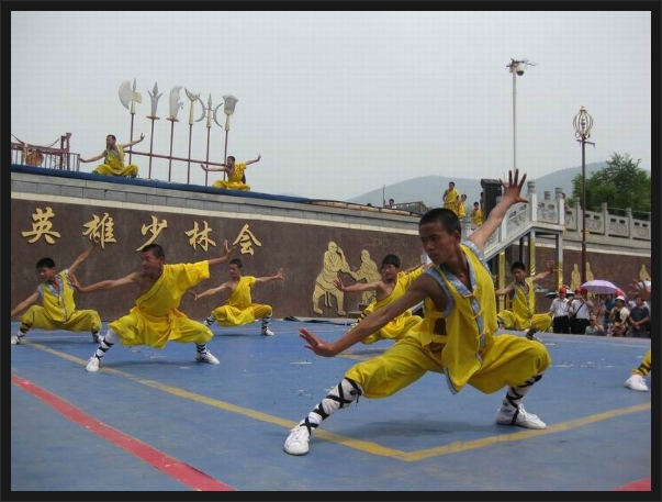 마침 그 도시 외곽의 산 중턱에 그 유명한 소림사가 있다는 말을 듣고 B시로 돌아오는 길에 시간을 잠시 내어 들러보았습니다. 소림사 주변에는 소림사에서 운영하는 전문 무술학교가 있어서 각지의 어린이들이 와서 기숙사 생활을 하며 무술을 배우고 있었습니다. 이들 학교의 졸업생들은 주로 경호원 등으로 취직하게 된다 합니다. 아울러 관광객들을 위한 무술 시범도 하루 두 차례 실시되고 있었습니다.