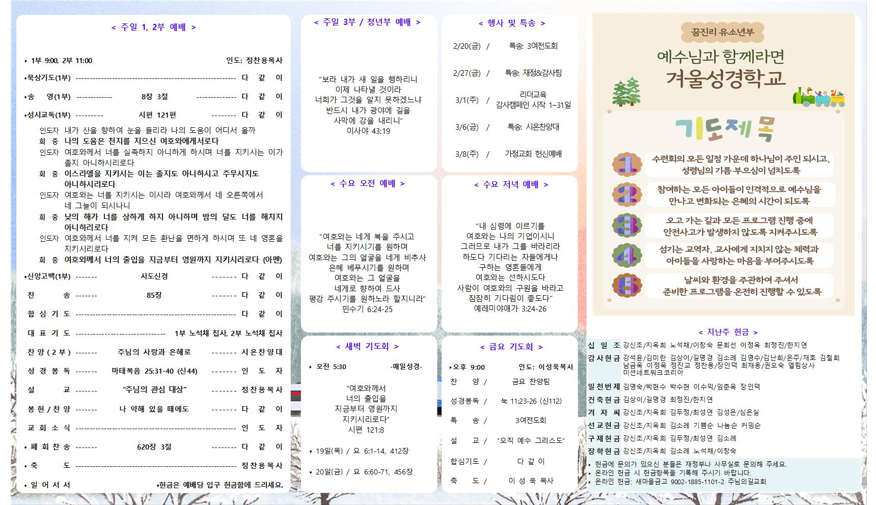 - 꿈진리 유소년부: 2월20일(금)-21일(토), 가평 레인보우 프렌즈 팬션
