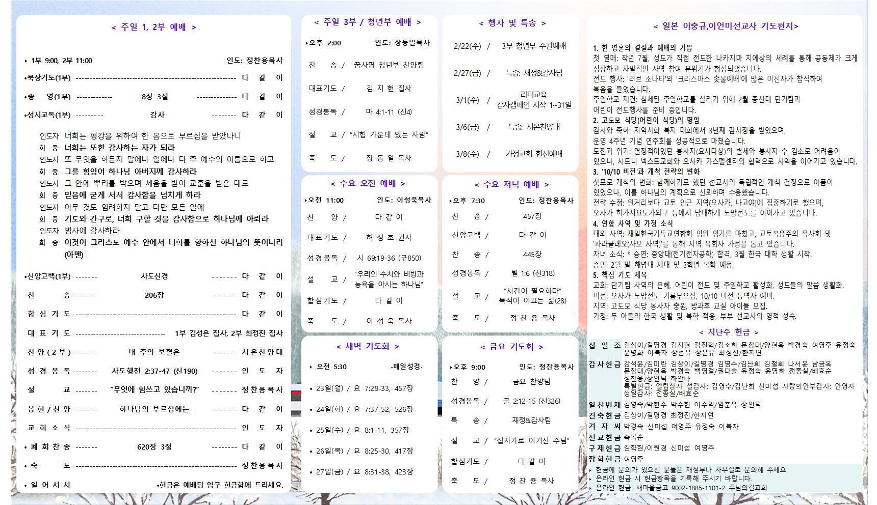 - 수요오전예배를 3월4일부터 ‘수요1시예배’로 변경 (예배 후 전도)